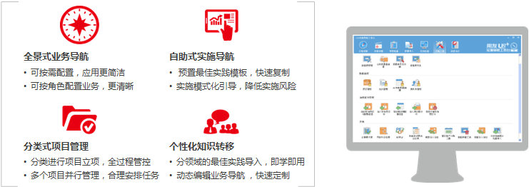 U8+可以為您提供簡(jiǎn)單適用、快速見(jiàn)效、低成本的實(shí)施工具,全面提升實(shí)施效能。