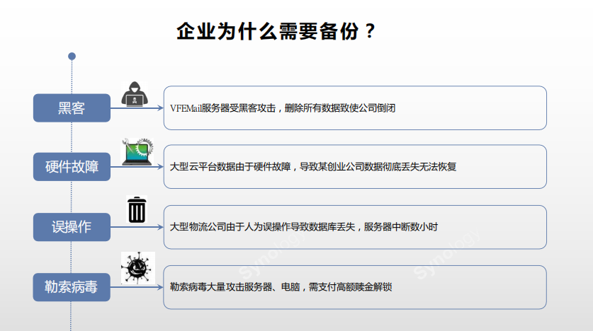 根據(jù)勒索軟件、病毒最終的勒索方式,有針對(duì)性的做預(yù)防措施。勒索方式主要是加密或破壞用戶數(shù)據(jù)。如果我們提前做好了備份,即使感染了病毒,也可以直接啟用備份,避免受影響。反病毒和反惡意軟件網(wǎng)絡(luò)防護(hù)產(chǎn)品雖然防護(hù)給力,但是未知網(wǎng)絡(luò)威脅發(fā)展太快,任何工具都無(wú)法提供100%防護(hù)。所以定時(shí)自動(dòng)的數(shù)據(jù)備份是預(yù)防勒索病毒最基礎(chǔ)、最重要的方式之一。