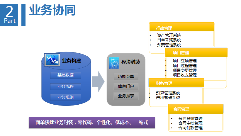 第二環(huán),是業(yè)務(wù)之間的協(xié)同,工作和業(yè)務(wù)又形成相互的融合。根據(jù)企業(yè)業(yè)務(wù)場景,為企業(yè)量身定制,覆蓋各個層面與領(lǐng)域。