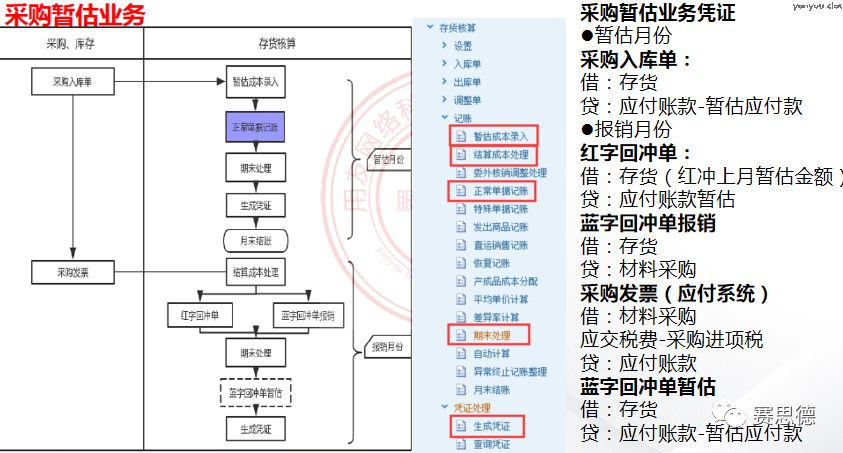 老師將這兩種業(yè)務(wù)畫了一個(gè)清晰的流程圖,并將每個(gè)節(jié)點(diǎn)對(duì)應(yīng)單據(jù)生成的憑證列舉出來,給大家梳理一遍。最后還將采購結(jié)算余額表與暫估材料商品余額表對(duì)賬,材料采購科目對(duì)賬的詳細(xì)思路與步驟進(jìn)行總結(jié),下次大家再遇到這個(gè)問題就不會(huì)束手無策啦。